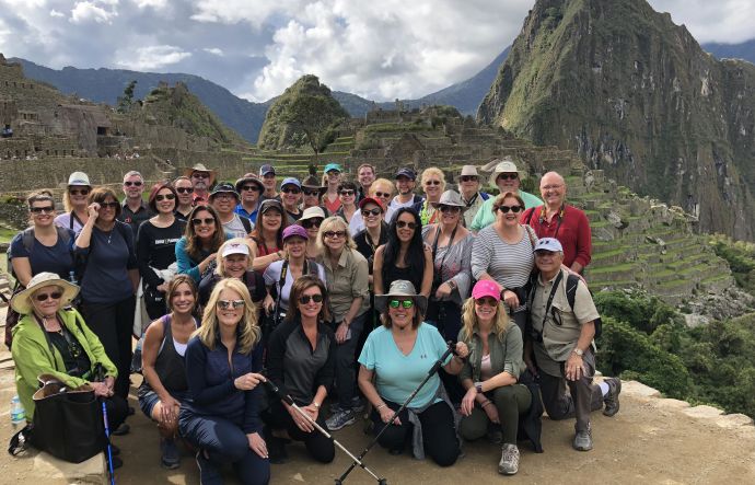 Michelle Fee at Machu Picchu with Cruise Planners top-producing travel advisors and travel partners as part of the Elite Summit trip.