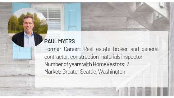 After signing on as an independently owned and operated  HomeVestors® franchisee, Myers found his qualified lead pool increasing, thanks to the strong marketing support generated by HomeVestors’ national brand, “We buy ugly houses®”. He focuses on investing in properties outside of Seattle proper that appeal to first-time homebuyers that can be rehabbed and sold in four to six months. Myers expects he will close on 50 homes this year, and typically works on 8 to 10 projects at any given time.